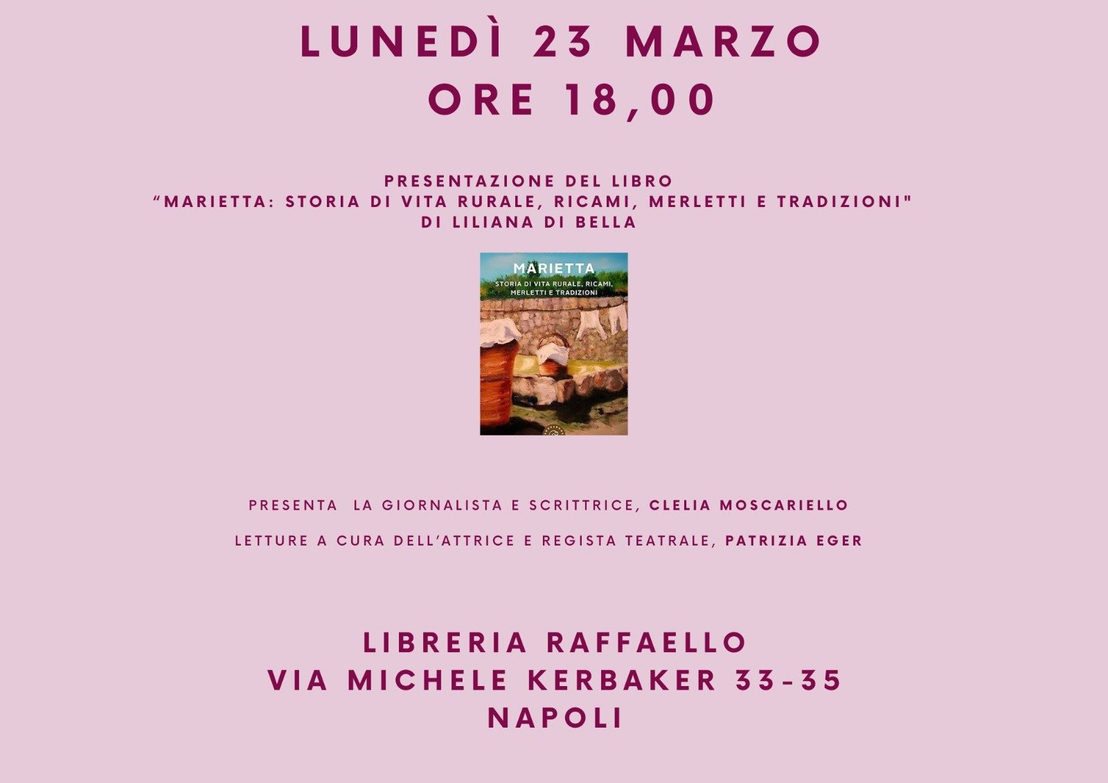 Con l’autrice interviene la giornalista e scrittrice CLELIA MOSCARIELLO.