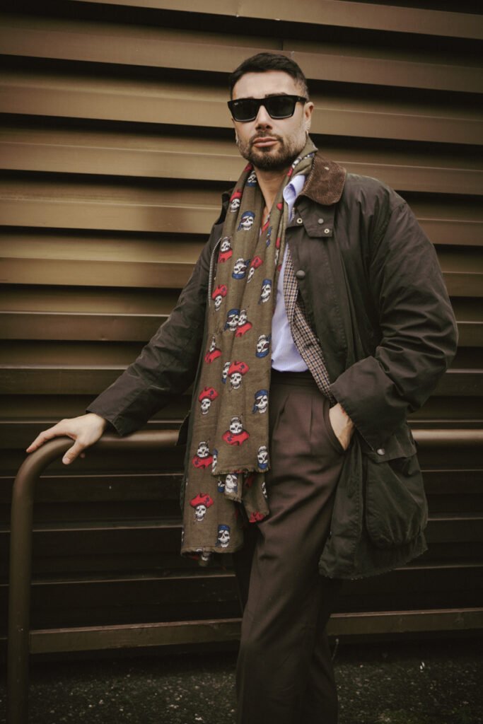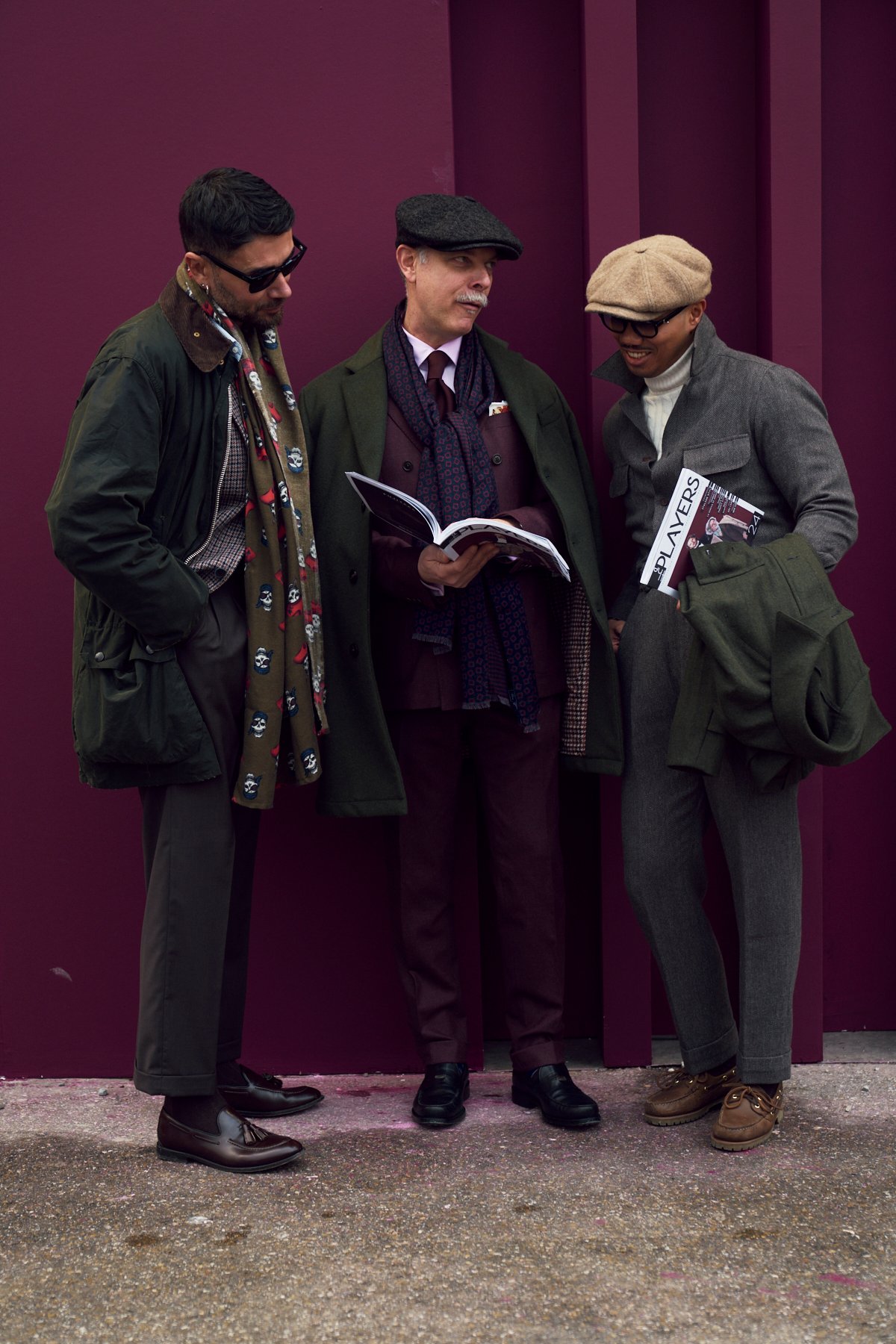 Come sempre, Pitti è anche un grande teatro a cielo aperto. Fuori dai padiglioni, il menswear diventa performance urbana. C’è chi interpreta lo stile come rigore assoluto, chi come gioco colto, chi come dichiarazione identitaria. Ma ciò che colpisce davvero è l’assenza di caricatura: lo street style torna a essere credibile, vissuto, meno costume e più verità.